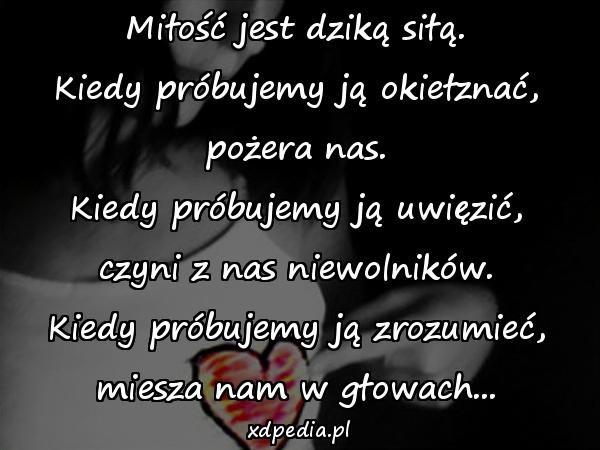 Miłość jest dziką siłą. Kiedy próbujemy ją okiełznać, pożera nas. Kiedy próbujemy ją uwięzić, czyni z nas niewolników. Kiedy próbujemy ją zrozumieć, miesza nam w głowach…