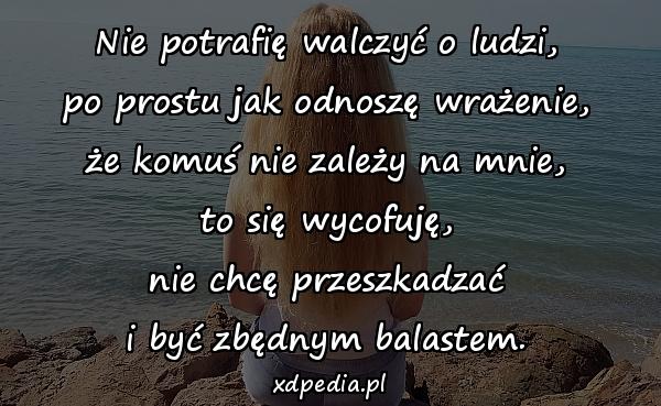 Nie potrafię walczyć o ludzi, po prostu jak odnoszę wrażenie, że komuś nie zależy na mnie, to się wycofuję, nie chcę przeszkadzać i być zbędnym balastem.