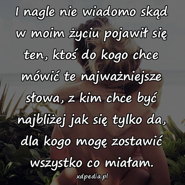 I nagle nie wiadomo skąd w moim życiu pojawił się ten, ktoś do kogo chce mówić te najważniejsze słowa, z kim chce być najbliżej jak się tylko da, dla kogo mogę zostawić wszystko co miałam.