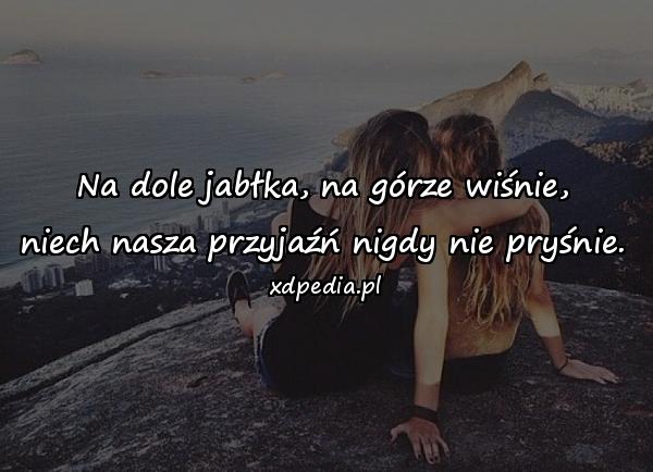 Na dole jabłka, na górze wiśnie, niech nasza przyjaźń nigdy nie pryśnie.