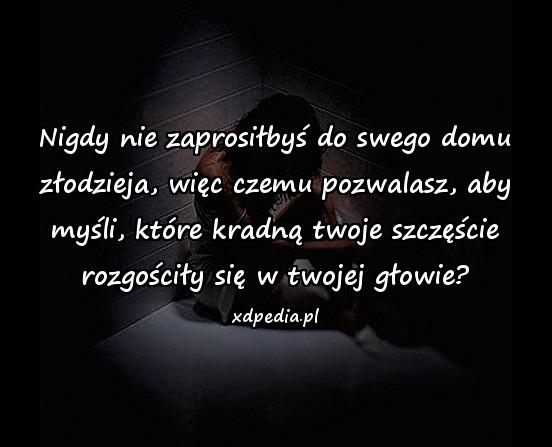 Nigdy nie zaprosiłbyś do swego domu złodzieja, więc czemu pozwalasz, aby myśli, które kradną twoje szczęście rozgościły się w twojej głowie?