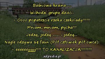 Baśniowa kraina….. Wchodzi grupa dzieci: – Oooo popatrzcie rzeka czekolady!!!!!! Mniam, mniam, pycha!!! Jedzą, jedzą ……. i jedzą… Nagle odzywa się faun (Pół człowiek pół...
