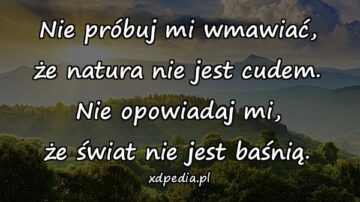 Nie próbuj mi wmawiać, że natura nie jest cudem. Nie opowiadaj mi, że świat nie jest baśnią.