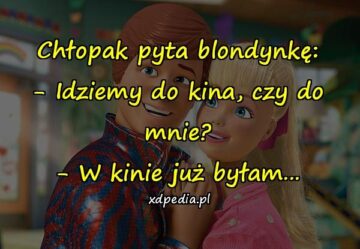 Chłopak pyta blondynkę: – Idziemy do kina, czy do mnie? – W kinie już byłam…