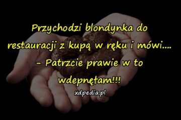 Przychodzi blondynka do restauracji z kupą w ręku i mówi…. – Patrzcie prawie w to wdepnęłam!!!