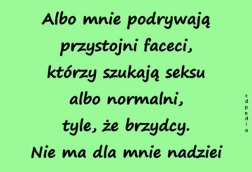 Albo mnie podrywają przystojni faceci, którzy szukają seksu albo normalni, tyle, że brzydcy. Nie ma dla mnie nadziei