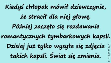 Kiedyś chłopak mówił dziewczynie, że stracił dla niej głowę. Później zaczęło się rozdawanie romantycznych tymbarkowych kapsli. Dzisiaj już tylko wysyła się zdjęcia takich kapsli. Świat...