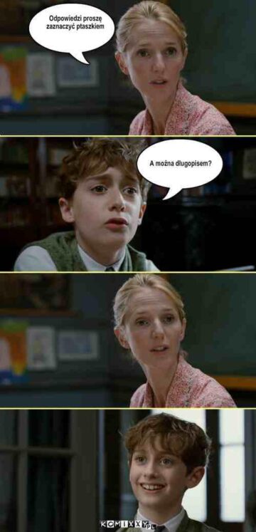 – Odpowiedzi proszę zaznaczyć ptaszkiem – A można długopisem?