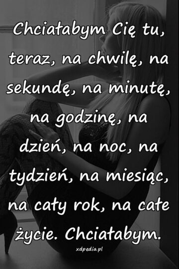 Chciałabym Cię tu, teraz, na chwilę, na sekundę, na minutę, na godzinę, na dzień, na noc, na tydzień, na miesiąc, na cały rok, na całe...