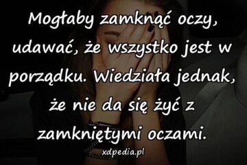 Mogłaby zamknąć oczy, udawać, że wszystko jest w porządku. Wiedziała jednak, że nie da się żyć z zamkniętymi oczami.