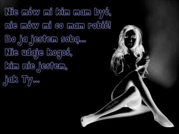 Nie mów mi kim mam być, nie mów mi co mam robić! Bo ja jestem sobą… Nie udaje kogoś, kim nie jestem, jak Ty…