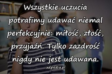 Wszystkie uczucia potrafimy udawać niemal perfekcyjnie: miłość, złość, przyjaźń. Tylko zazdrość nigdy nie jest udawana.