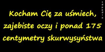 Kocham Cię za uśmiech, zajebiste oczy i ponad 175 centymetry skurwysyństwa