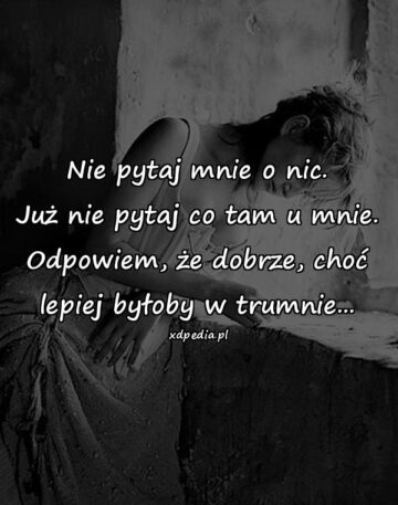 Nie pytaj mnie o nic. Już nie pytaj co tam u mnie. Odpowiem, że dobrze, choć lepiej byłoby w trumnie…