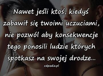Nawet jeśli ktoś, kiedyś zabawił się twoimi uczuciami, nie pozwól aby konsekwencje tego ponosili ludzie których spotkasz na swojej drodze…