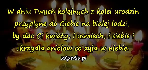 W dniu Twych kolejnych z kolei urodzin przyplyne do Ciebie na bialej lodzi,