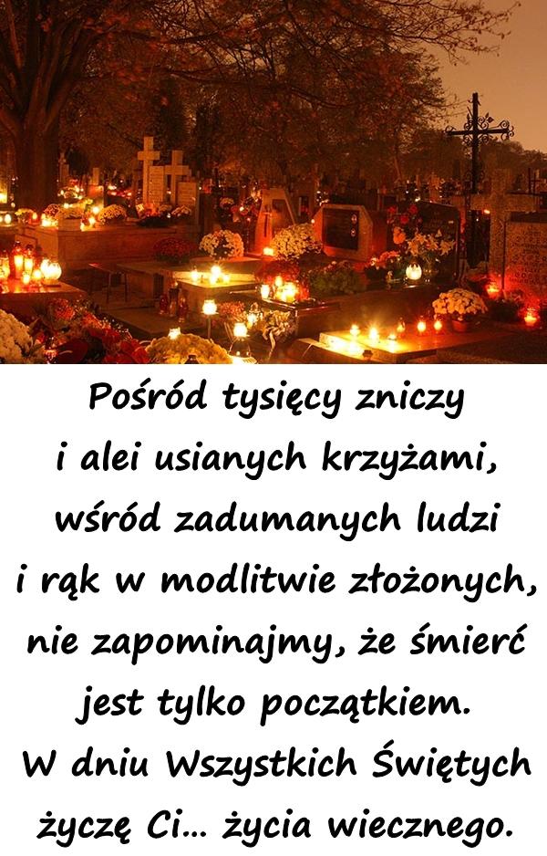 Pośród tysięcy zniczy i alei usianych krzyżami, wśród zadumanych ludzi i rąk w modlitwie złożonych, nie zapominajmy, że śmierć jest tylko początkiem. W dniu Wszystkich Świętych życzę Ci życia wiecznego.