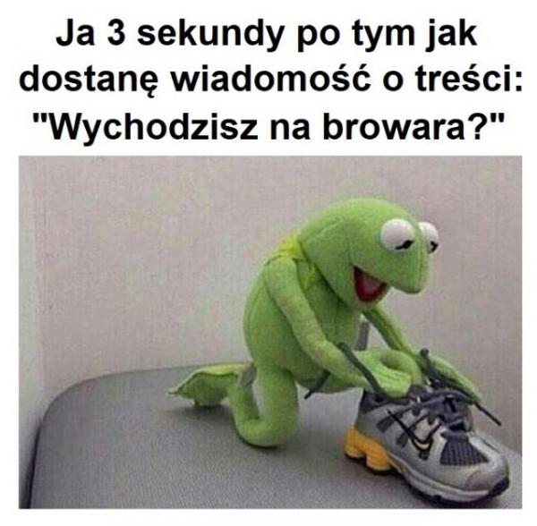 Ja w 3 sekundy po tym jak dostanę wiadomość o treści: Wychodzisz na browara?