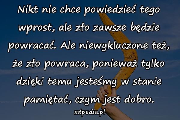 Nikt nie chce powiedzieć tego wprost, ale zło zawsze będzie powracać. Ale niewykluczone też, że zło powraca, ponieważ tylko dzięki temu jesteśmy w stanie pamiętać, czym jest dobro.