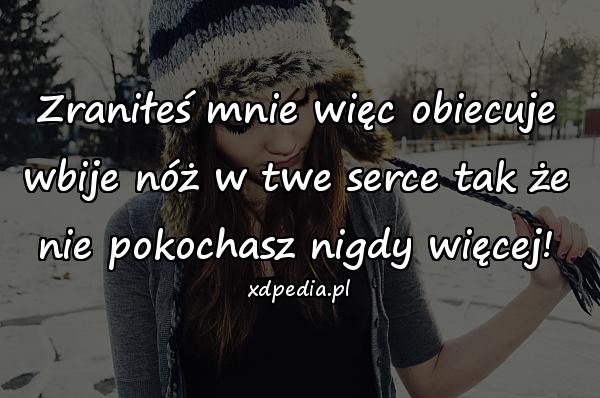 Zraniłeś mnie więc obiecuje wbije nóż w twe serce tak że nie pokochasz nigdy więcej!