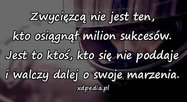 Zwycięzcą nie jest ten, kto osiągnął milion sukcesów. Jest to ktoś, kto się nie poddaje i walczy dalej o swoje marzenia.